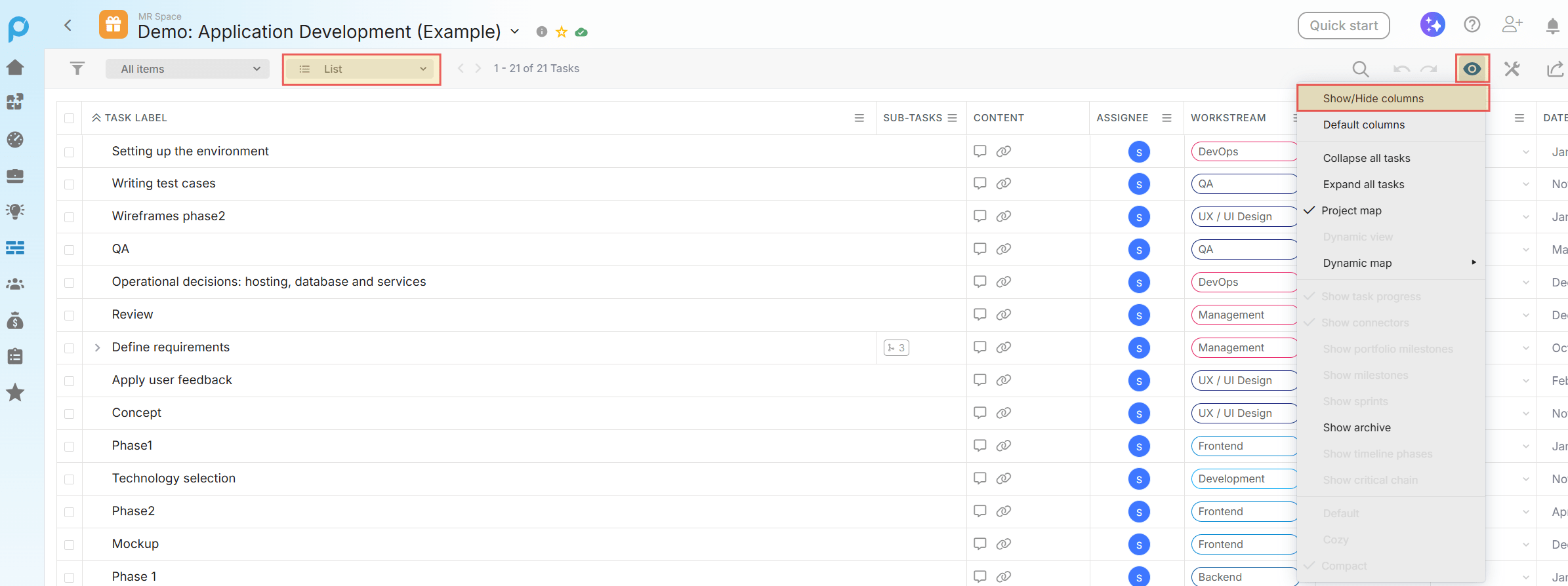 - Add them as columns for sorting, viewing, or editing directly in Project, PPM, or Task Report list views.